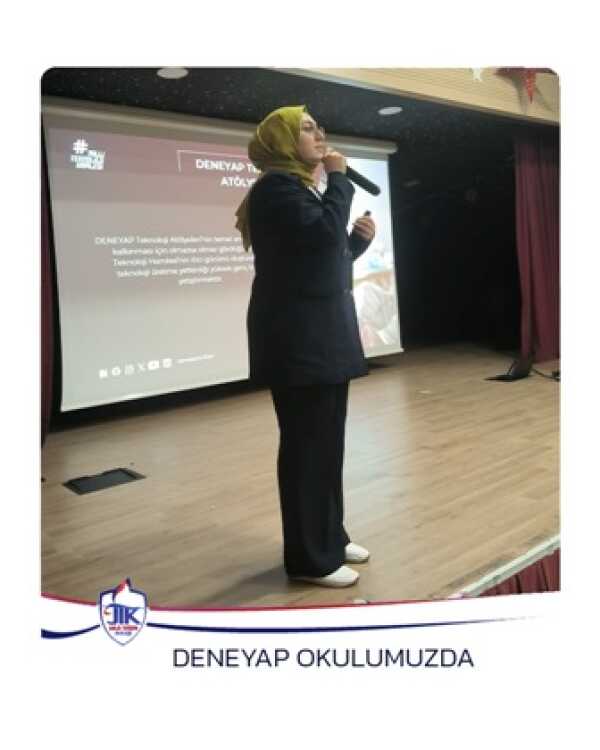 Jale Tezer Bilim Fen Okulları Çayyolu Yerleşkesinde DENEYAP Ankara sorumlusu tarafından öğrencilerimize yönelik bilgilendirici bir sunum gerçekleştirildi. Sunumda, DENEYAP Teknoloji Atölyeleri’nin amacı, eğitim içerikleri ve başvuru süreçleri hakkında detaylı bilgiler paylaşıldı.