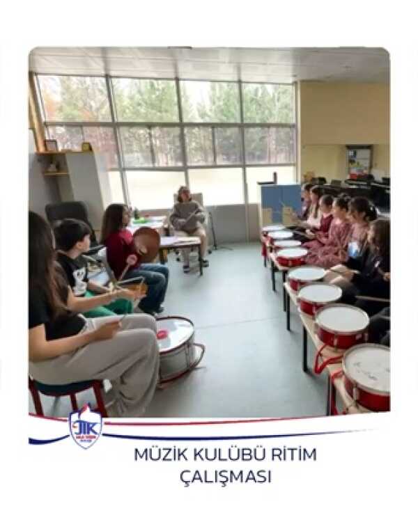Müzik Kulübü Ritim Çalışması Ortaokul 10 Mart 2026 Jale Tezer Koleji Gop Yerleşkesi Müzik kulübü öğrencilerimiz, ritim enstrümanlarıyla şarkılara eşlik ederek hem eğleniyor hem de ritim çalışmalarını sürdürüyor. MÜZİK KULÜBÜ RİTİM ÇALIŞMASI
