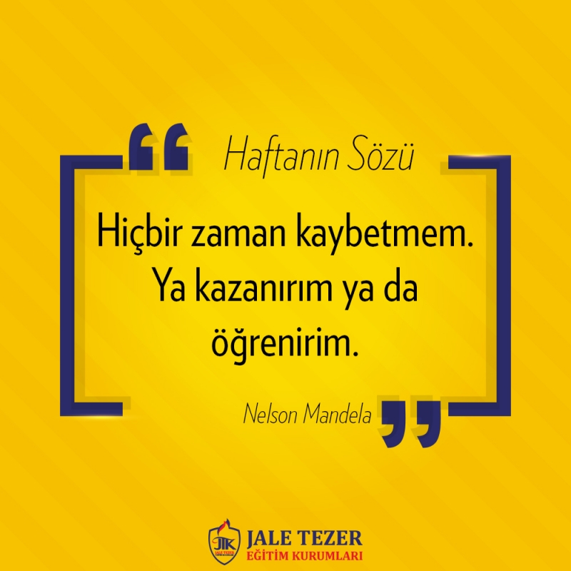 Hiçbir zaman kaybetmem. Ya kazanırım ya da öğrenirim. Nelson Mandela